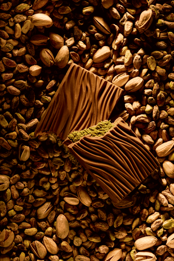 مزيج من شوكولاتة الحليب وزبدة الفستق مع الطحينة والكنافة، ولمسة الزبدة غير المملحة لمذاق فاخر.